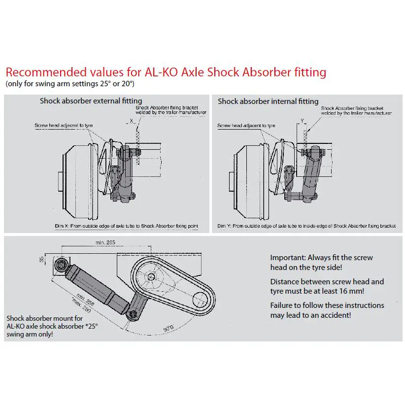 Single shock absorber bracket to attach to AL-KO European torsion suspension arm