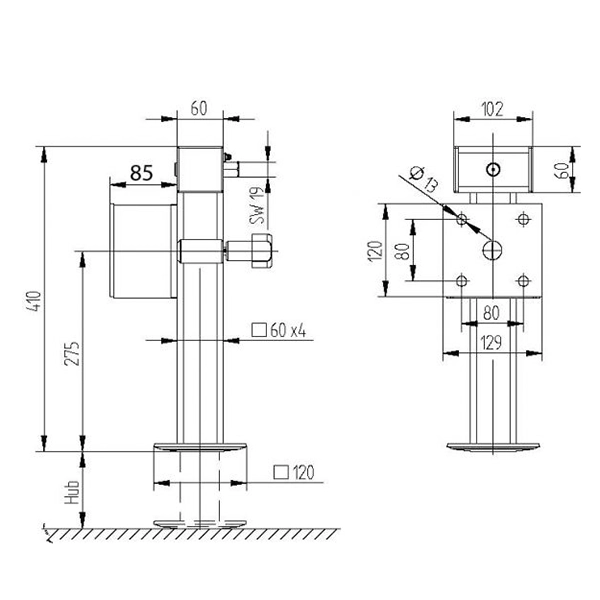 60x60x4mm Support Tube with Heavy Duty Foot